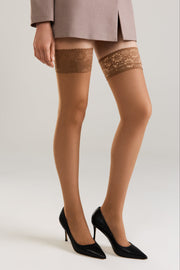 Ultra-sheer women’s stockings CLASS 12 with self-supporting lace top.