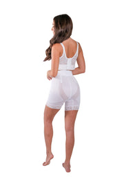 A mesh front panel with built-in boning provides structured support, while the floral lace overlay adds a feminine touch. Designed for comfort and practicality, this girdle also includes an open crotch gusset for convenience.