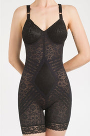 Rago Style 9077 lace body briefer made of lacette jacquard knit fabric made of 70% nylon, 30% Invista® Lycra® with two-way stretch in a special lace floral motif.