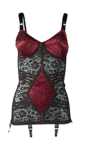 This contour body shaper features power-net lace, exclusive contour bands, and metal garters for comfort and fit. This lacette jacquard knit fabric is made of 70% nylon, 30% Invista® Lycra® with two-way stretch in a special lace floral design.