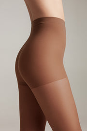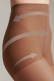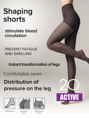 Transparent tights with shaping shorts ACTIVE 20 model the figure, visually reducing the volume of hips, waist, and abdomen. Distributed leg pressure helps prevent fatigue and swelling.