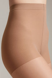 Transparent tights with shaping shorts ACTIVE SOFT 20 model the figure, visually reducing the volume of hips, waist, and abdomen. Distributed pressure along the leg helps prevent fatigue and swelling. These tights are specially designed for sensitive skin: the top is treated with microcapsules of vitamin E to care for the skin of the legs.