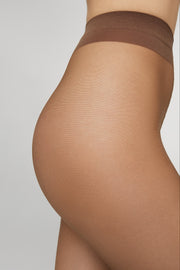 Thin and elastic PRESTIGE tights with a "silky touch" effect create a special feeling of softness. The tights are made of multifilament yarns, which form a fabric that is ultra-durable, smooth, and has a slight glossy sheen. The discreet, refined glow of the fabric makes the legs visually smooth and slim.