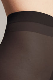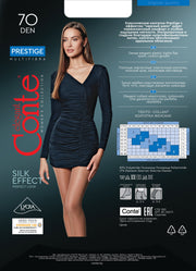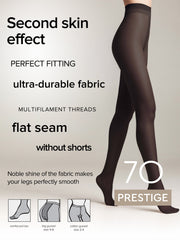 Dense elastic PRESTIGE tights with a "soft silk" effect offer a unique sensation of smoothness, perfect for elegant looks. The fabric is ultra-smooth with a subtle glossy finish, visually elongating the legs.