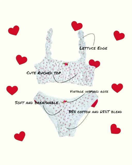 View full detailsThis French-style Romantic matching set, inspired by the Amalfi Coast and 1930s Italian lingerie, features a seamless knit bralette with ruffled le...