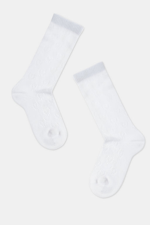 View full detailsMOLLY thin knee-high socks with a geometric heart pattern – an excellent gift for your little fashionista! These knee-high socks will look great bo...