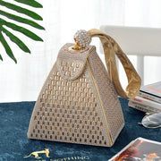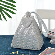 Introducing the ultimate accessory for your elegant outings – a stunning triangular diamond-shaped handbag that perfectly complements your evening gown or traditional qipao. This exquisite clutch not only elevates your style but also offers a functional design that enhances your experience at any event.