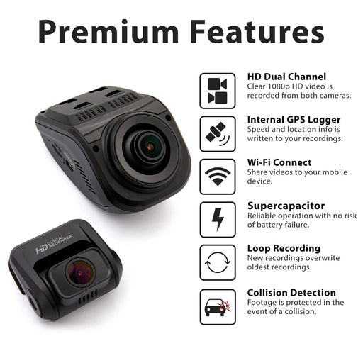 View full details170 Degree Wide Angle | Supercapacitor | 2.4” LCD Screen | G-Sensor | Loop Recording | Mobile App Full HD All -Around 1080p Resolution (Front + Re...