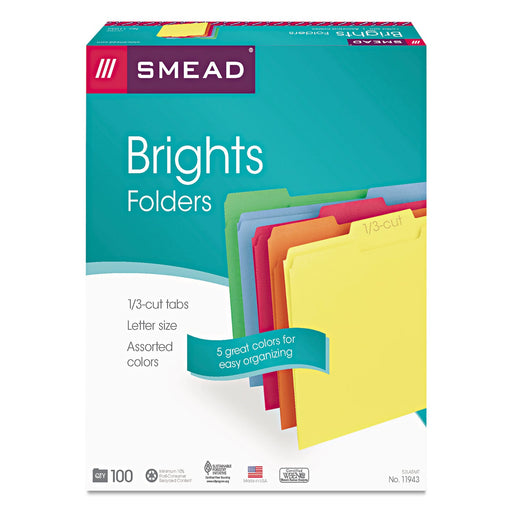 Smead Colored File Folders, 1/3-Cut Tabs: Assorted, Letter Size, 0.75" Expansion, Navy Blue, 100/Box
