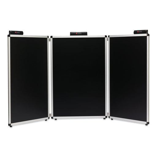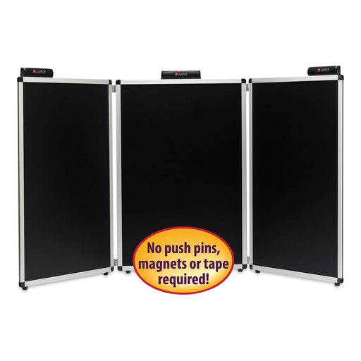 Three panels, each with a 26"W x 36"H usable surface (82.5"W x 39.13" H overall). No pins, magnets, tape or glue required - simply place your docum...