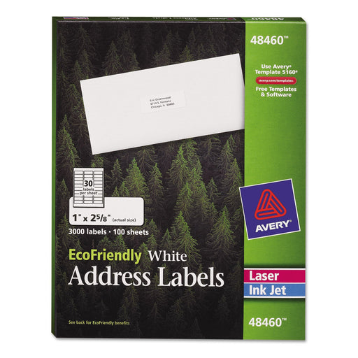 Avery EcoFriendly Mailing Labels, Inkjet/Laser Printers, 1 x 2.63, White, 30/Sheet, 100 Sheets/Pack