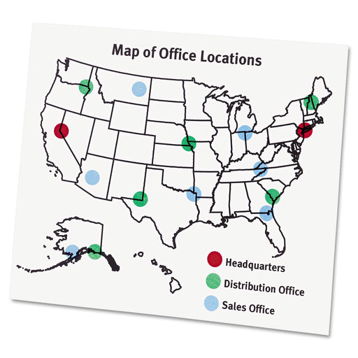 These removable see-through color dots are designed to help you find your way. Their translucent color allows you to affix them to maps, reports, l...