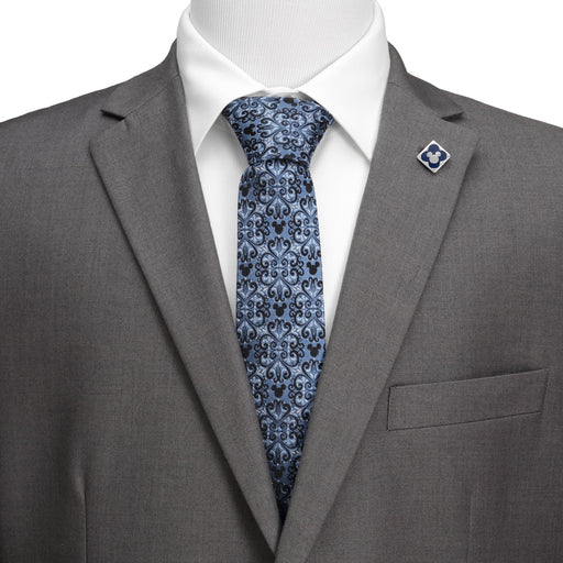 View full detailsElevate your neck tie game with this luxurious 100% silk tie, featuring an elegant blue damask pattern woven around a series of black Mickey Mouse ...