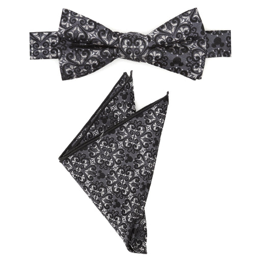 View full detailsA simple gray and black pattern of Mickey Mouse silhouette motifs with tasteful damask swirls helps make our Mickey Mouse Damask Pattern Bow Tie an...