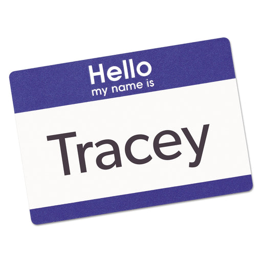 Avery Printable Adhesive Name Badges, 3.38 x 2.33, Blue "Hello", 100/Pack