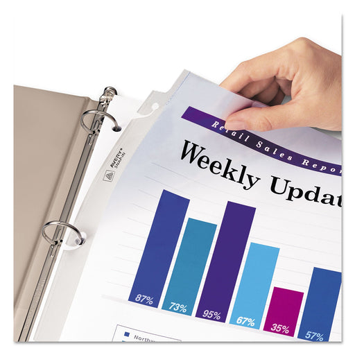 View full detailsReplacing the pages in your three-ring binder is a snap with these diamond clear Snap-In Sheet Protectors. The binding edge features a unique desig...