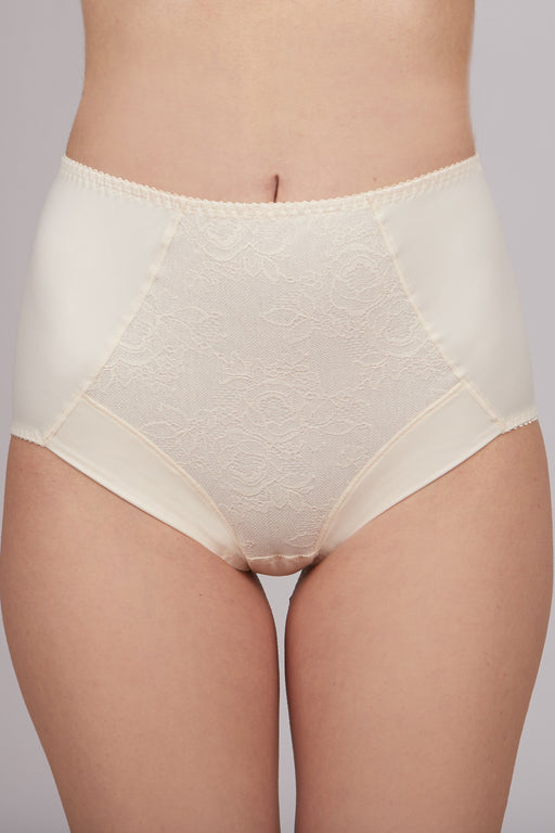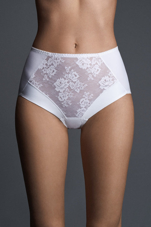 View full detailsWomen's high-waisted slip panties made from elastic fabric. The front features a lace fabric insert laminated with cotton. The gusset is cotton. Th...