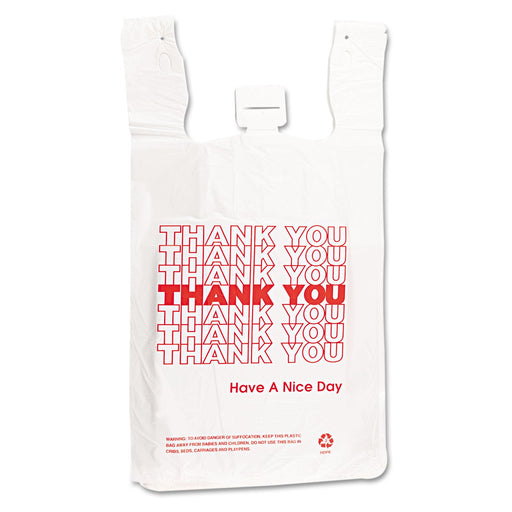 View full detailsPreprinted "Thank You" shopping bags help you show appreciation while boosting your image. Strong, high-density plastic resists tearing and splitti...