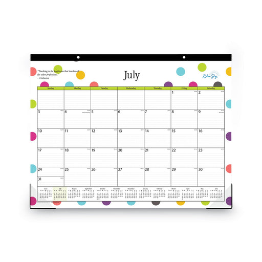 Blue Sky Teacher Dots Academic Desk Pad, 22 x 17, Black Binding, Clear Corners, 12-Month (July to June): 2022 to 2023