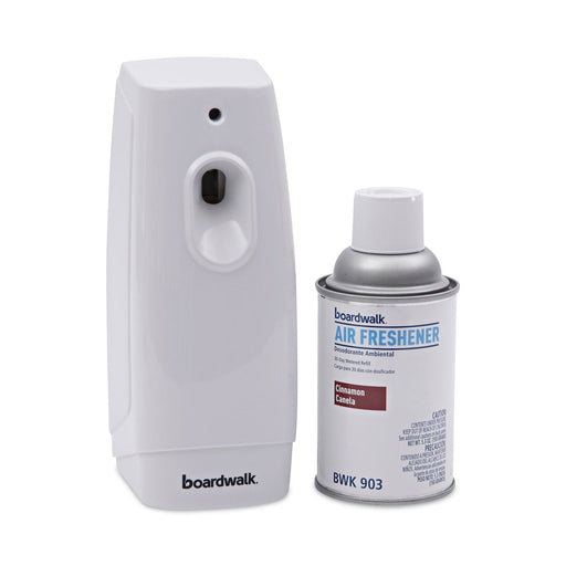 View full detailsBoardwalk® Air Freshener Dispenser Starter Kit includes a metered air freshener and a 5.3 oz cinnamon sunset fragrance can. The classic, metered di...