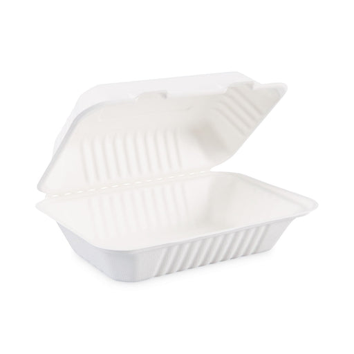 Boardwalk Bagasse Food Containers, Hinged-Lid, 1-Compartment 9 x 6 x 3.19, White, Sugarcane, 125/Sleeve, 2 Sleeves/Carton