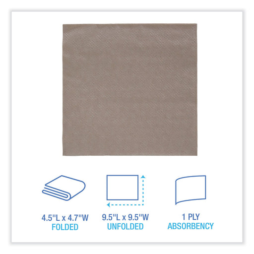 Boardwalk Beverage Napkins, 1-Ply, 9.5" x 9.5", Kraft, 500/Pack, 8 Packs/Carton