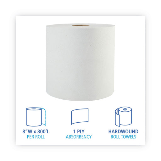 Boardwalk Hardwound Paper Towels, 1-Ply, 8" x 800 ft, White, 6 Rolls/Carton