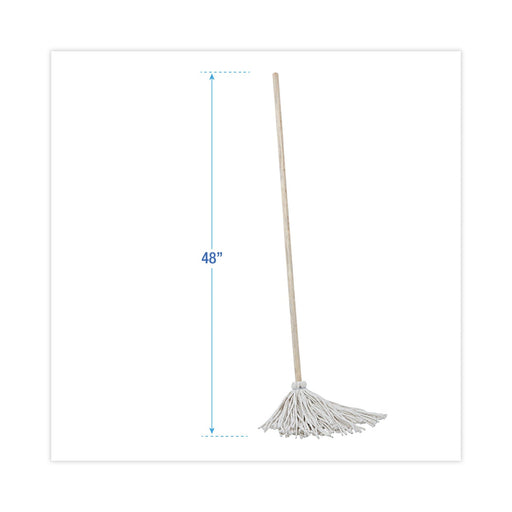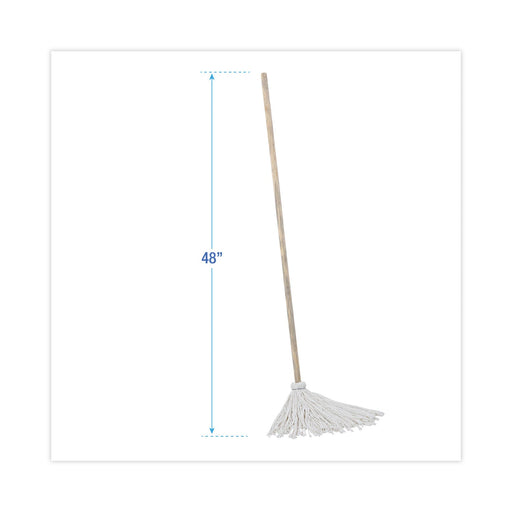 Boardwalk Handle/Deck Mops, 12 oz White Cotton Head, 48" Oak Wood Handle, 6/Pack