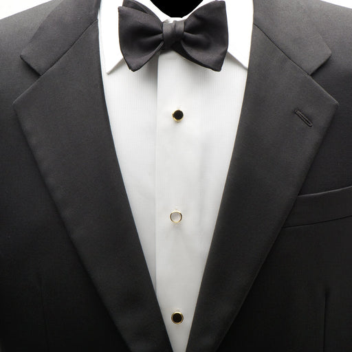 View full detailsOur Double Sided Gold Onyx Stud Set is perfect for that special occasion. A round beveled edge of gold plated base metal borders Onyx stone for a s...