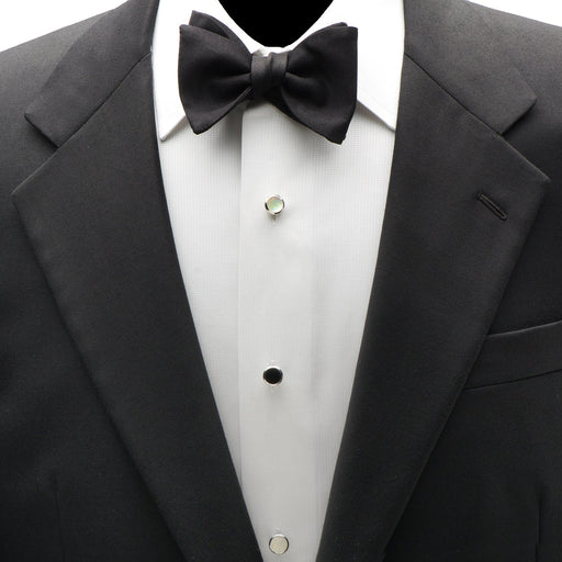 View full detailsThe Double Sided Mother of Pearl Stud Set is perfect for that special occiasion. A round beveled edge of silver plated base metal borders Mother o...