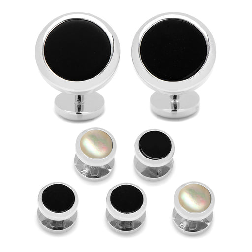 View full detailsThe Double Sided Onyx Stud Set is perfect for that special occasion. A round beveled edge of plated base metal borders Onyx stone for a sophistica...