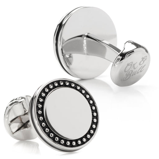 View full detailsMade with an antique silver finish, our Engravable Studded Cufflinks have a vintage feel while staying true to modern style. The outer rim of the e...