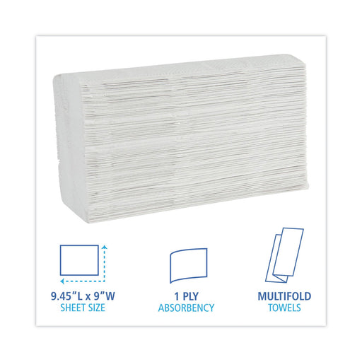 Boardwalk Multifold Paper Towels, 1-Ply, 9 x 9.45, White, 250 Towels/Pack, 16 Packs/Carton