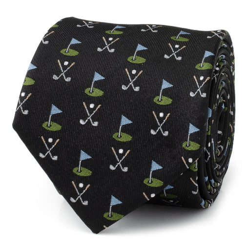 View full detailsPrinted on this black, 100% Silk tie are alternating rows of golf clubs and the Green. Perfect for meetings at the golf course or just for fans of ...