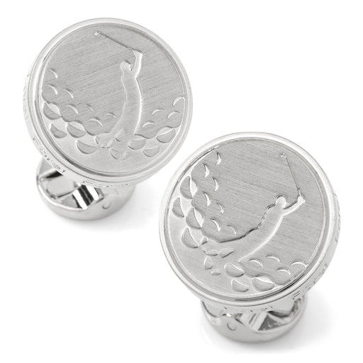 View full detailsFans and players of golf will love these cufflinks! Made with a brushed silver finish, these cufflinks feature an indentation of a golfer in full s...