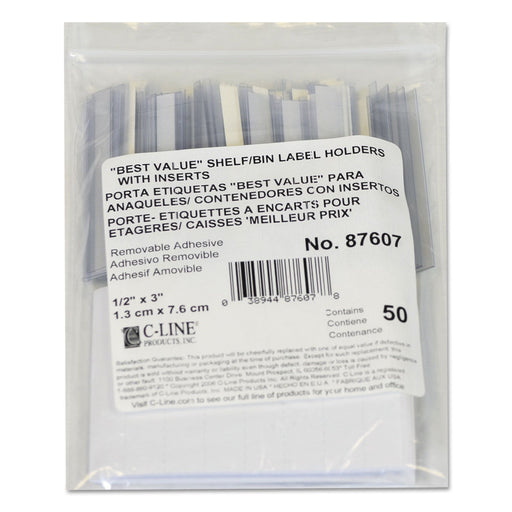 C-Line Self-Adhesive Label Holders, Top Load, 0.5 x 3, Clear, 50/Pack