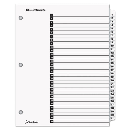 Cardinal OneStep Printable Table of Contents and Dividers, 31-Tab, 1 to 31, 11 x 8.5, White, White Tabs, 1 Set
