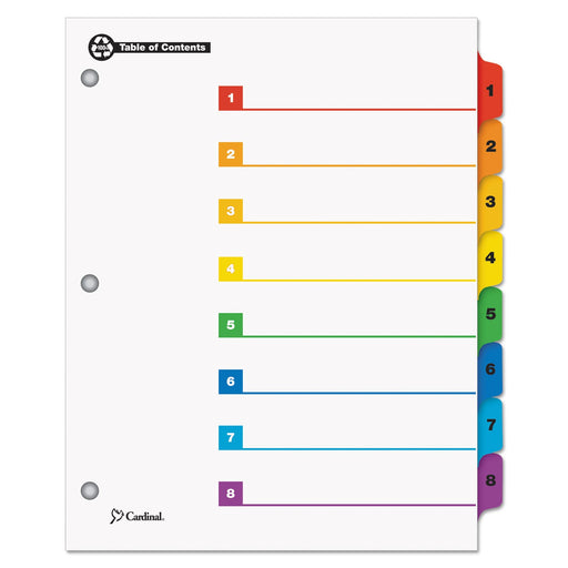 Cardinal OneStep 100% Recycled Printable Table of Contents Dividers, 8-Tab, 1 to 8, 11 x 8.5, White, 1 Set