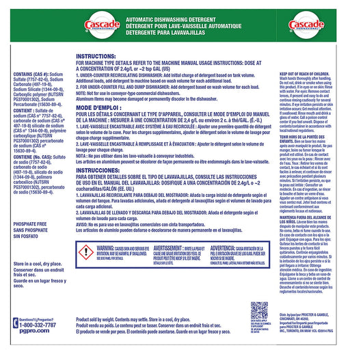 View full detailsCascade ActionPacs dishwasher detergent powers away greasy residue for sparkling dishes. That’s because every ActionPac combines the scrubbing powe...