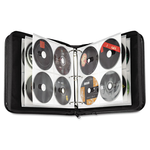 View full detailsStore your favorite CDs or DVDs in this zippered ring binder. Tough, durable nylon exterior resists heat and abrasion. Polypropylene ProSleeves® pr...