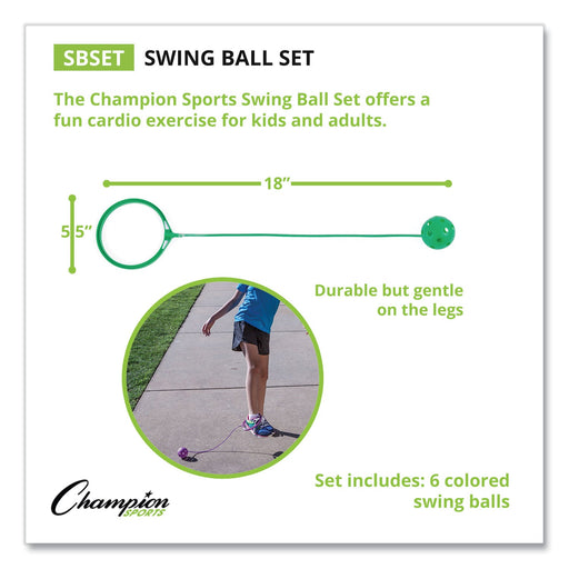 Champion Sports Swing Ball Set, 5.5" Diameter, Assorted Colors, 6/Set