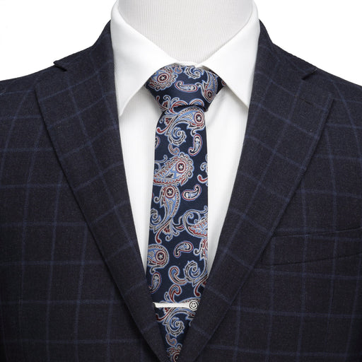 View full detailsA scattered paisley design in shades of red, black, and blue appears on this 100% silk navy tie. Look closely and you'll spot Captain America's shi...