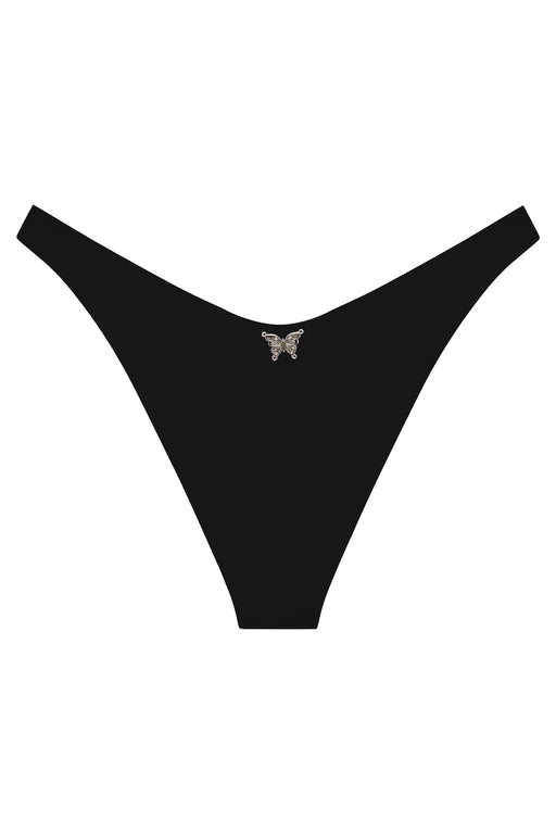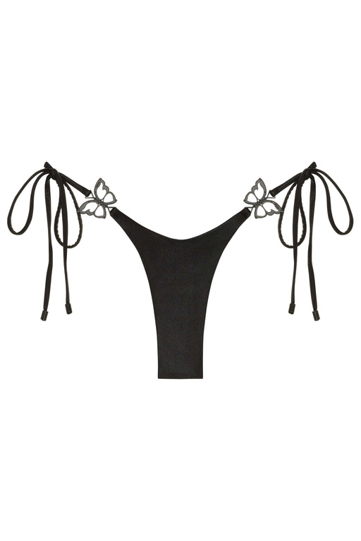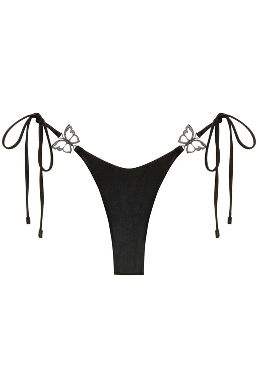 This Mariposa bikini bottom in shimmering black color features full coverage with side ties adorned with butterfly accessories on the front. It has...