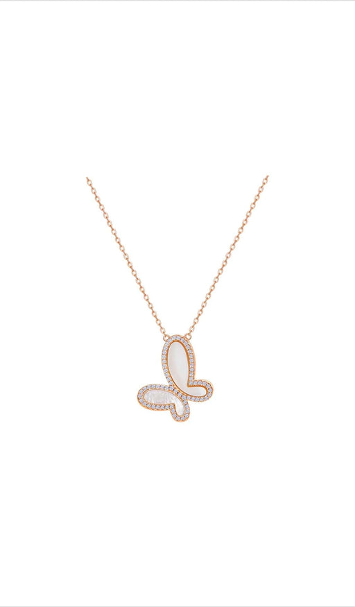 Mother of Pearl w/ 18k Gold & Cubic Zirconia Butterfly Necklace Jewelry