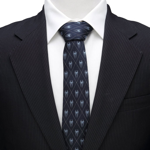 View full detailsA classic look with a twist. This 100% silk tie combines pale blue geometric diamonds with azure Spider-Man icons, carefully woven into a navy blac...