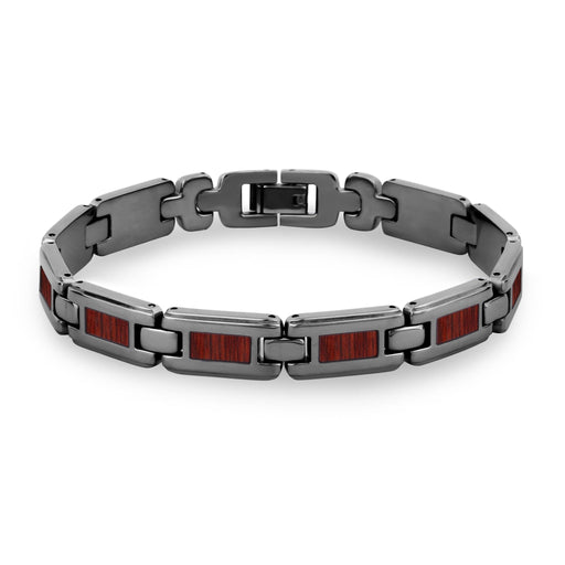 Men's gunmetal plated stainless steel link bracelet with Australian Jarrah wood inlays. Links are removable to adjust for size. Metal: Gunmetal Pl...