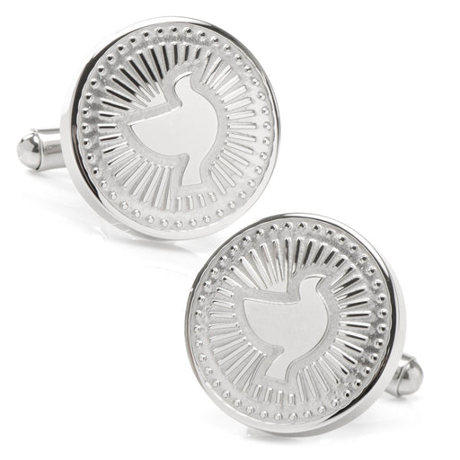 View full detailsA smooth Dove sits at the center of silver grooved metal, creating a radiant effect that catches the light on our Silver Dove Radial Cufflinks. The...