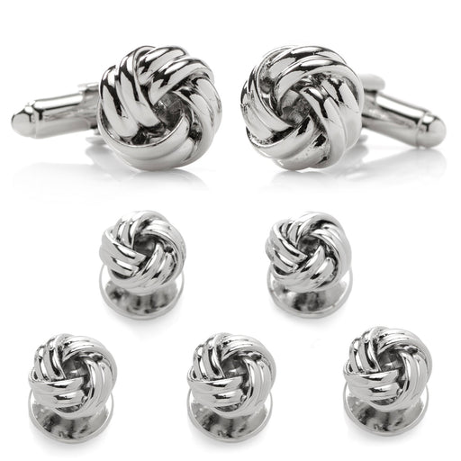 View full detailsA classic knot design with an elegant silver tone finish, the Silver Knot Stud Set features a pair of cufflinks and matching tuxedo studs that are ...