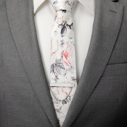 A beautiful yet masculine white floral design creates the subtle pattern on this soft gray pocket square. Our pocket square will retain its shape i...