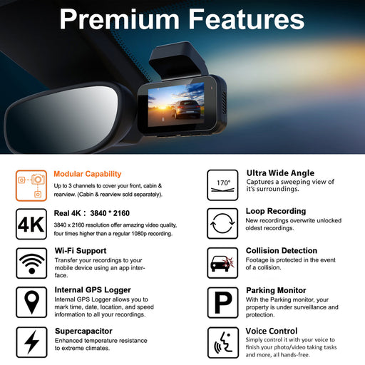 Night Vision | Loop Recording | Parking Monitor | Supercapacitor | Support 256GB Max | Voice Control (2023) | Rear or Cabin Camera Bundle Available...